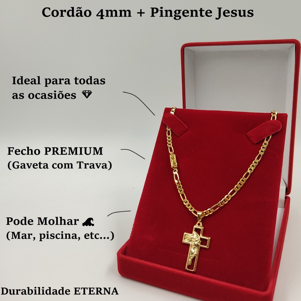 *** 100% Moeda Antiga *** (NÃO PERDE A COR NUNCA) - Nossas JÓIAS são fabricadas 100% em Moda Antiga com Verniz Antialérgico IMPORTADO e possuem acabamento de Joalheria de altíssima qualidade e perfeição! Somos FABRICANTES! Descrição do PRODUTO: Modelo: Cordão Elos 3x1 + Pingente Cruz Jesus Medidas da corrente: Comprimento 60cm / Espessura 4mm Medidas Pingente: Altura 3cm / Largura 2cm Peso Total: 25 gramas 100% Moeda Antiga (Durabilidade ETERNA) Temos todos os produtos a pronta entrega, fazemos o envio de sua compra em ate 24 horas após a confirmação do pagamento.