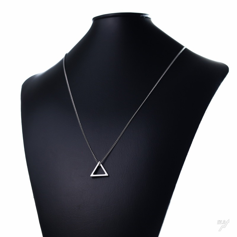 Colar Cordão Masculino com Pingente Triangulo Correntinha Aço Inoxidável cor Prata Não fica Preto