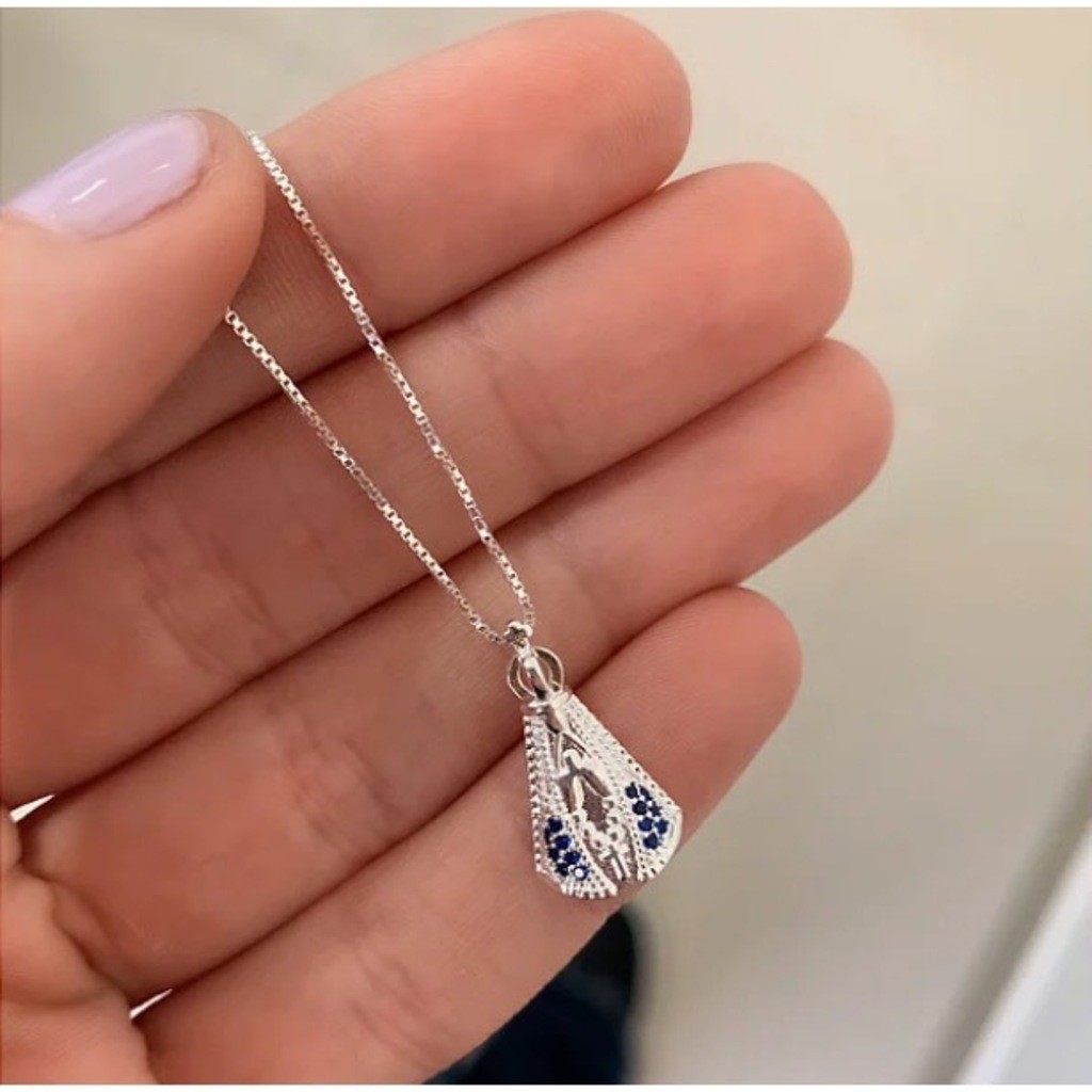 Colar Cordao Nossa Senhora Aparecida Pedras banhado à prata 925
