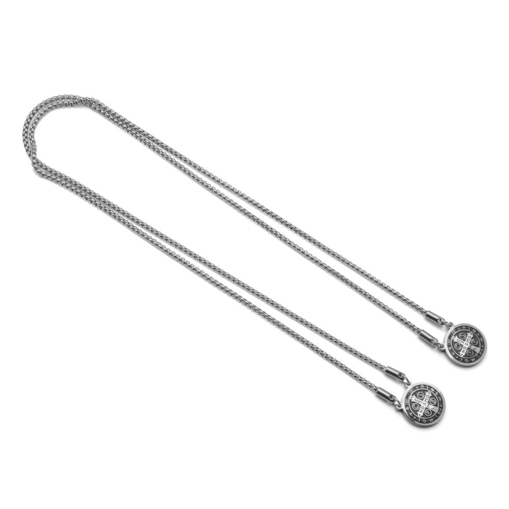 Colar Corrente Aço Inox com Medalha de São Bento 70cm