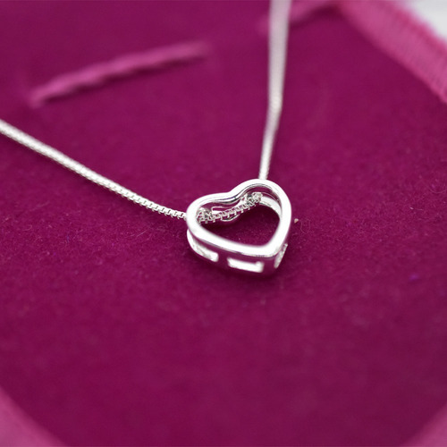 Colar Corrente Cordao Gargantilha Banhado Prata 925 Coração Vazado