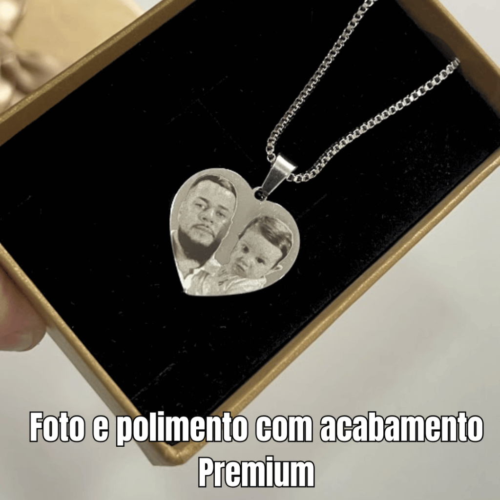 Detalhes do colar > Colar em aço inox > Não perde a cor, é resistente e antialérgico > Não precisa tirar para tomar banho. Pode entrar em contato com produtos químicos. > Corrente 45 ou 60cm de comprimento > Pingente plaquinha pequena > Gravação a laser de alta definição – não desbota nem apaga > Personalize com qualquer foto, nome, frase ou data > Envio em até 48horas úteis após confirmação da arte Por gentileza, envie a gravação imediatamente após a compra no chat que será liberado entre o cliente e a loja para que possamos enviar no mesmo dia ou no dia seguinte. Datas especiais: Dia dos namorados, aniversário, amigo secreto, dia dos pais