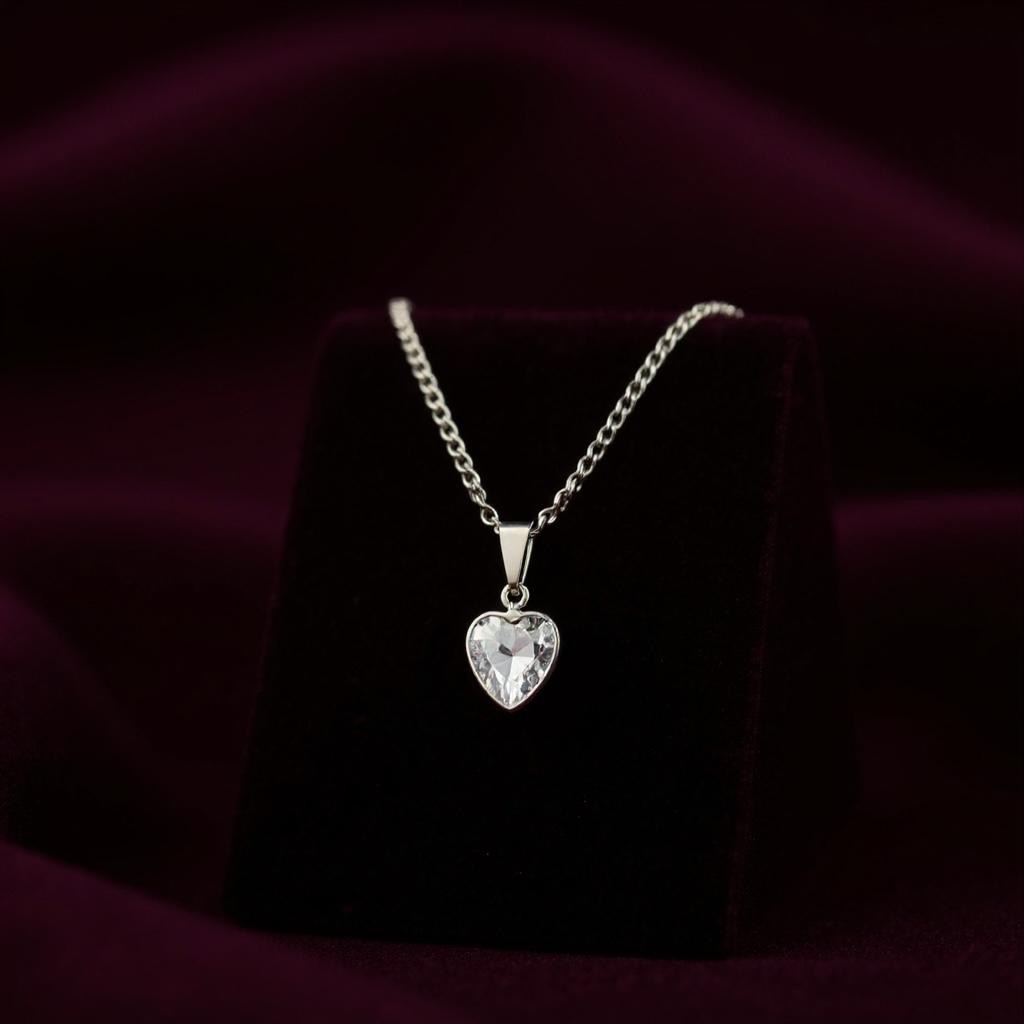 Colar Corrente Feminina Pingente Coração Aço Inoxidável Com Pedra de Zircônia