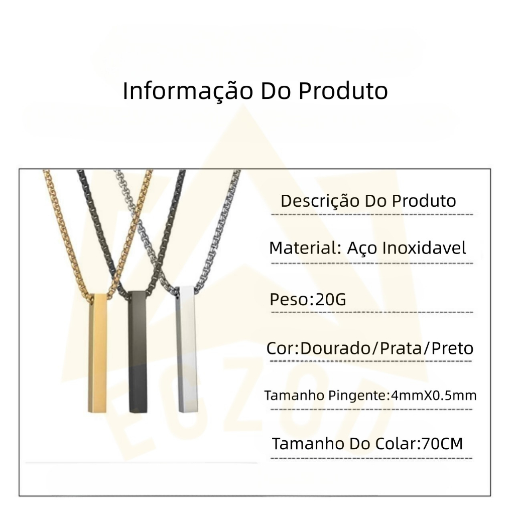 Colar Corrente Masculino com Pingente Retângulo Aço Inox Dourado/Prata/Preto 316l Pronta Entrega Envio para todo o Brasil Qualidade Bem-vindo à loja Egzod Características da loja possui características: Preço baixo / bom produto / diversos estilos / cor cheia Siga nossa loja para obter mais surpresas • ANTIALÉRGICO • NÃO ESCURECE • NÃO ENFERRUJA • FÁCIL DE LIMPAR ——Não fácil fica escurece ——Não fácil fica enferruja —— Fotos Reais do Produto •Corrente •Comprimento : 70cm Tamanho Do Pingente: Comprimento: 4MM Largura: 0.5MM