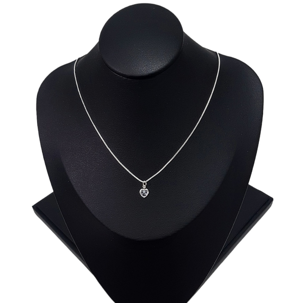 Colar Corrente Veneziana Feminina Ponto de Luz Coração Pedra Zircônia Folheado A Prata 925 45 cm