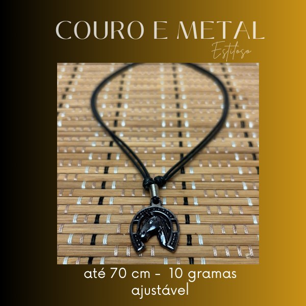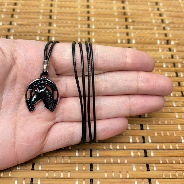 Colar Country Cavalo Ferradura Cordão Preto Ajustável Pingente Unissex