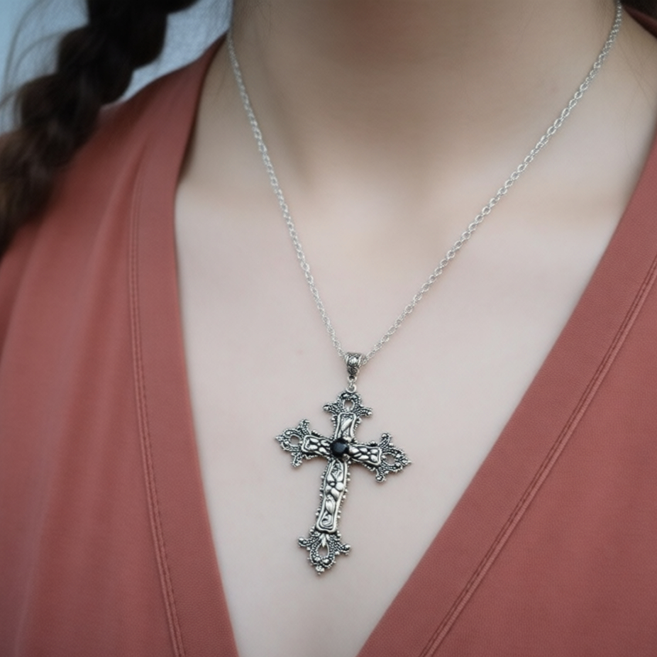 Colar Cruz Gótica Feminino Masculino Vintage Preto Pingente Religioso Aço Retrô Fashion Presente Estiloso