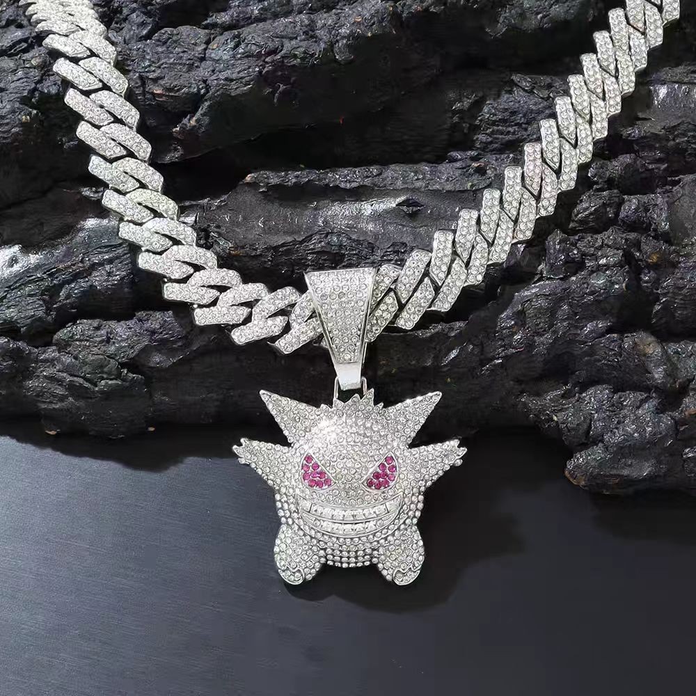 Colar cubano com pingente de elfo roxo e diabo hip hop masculino com diamantes e rock sugar