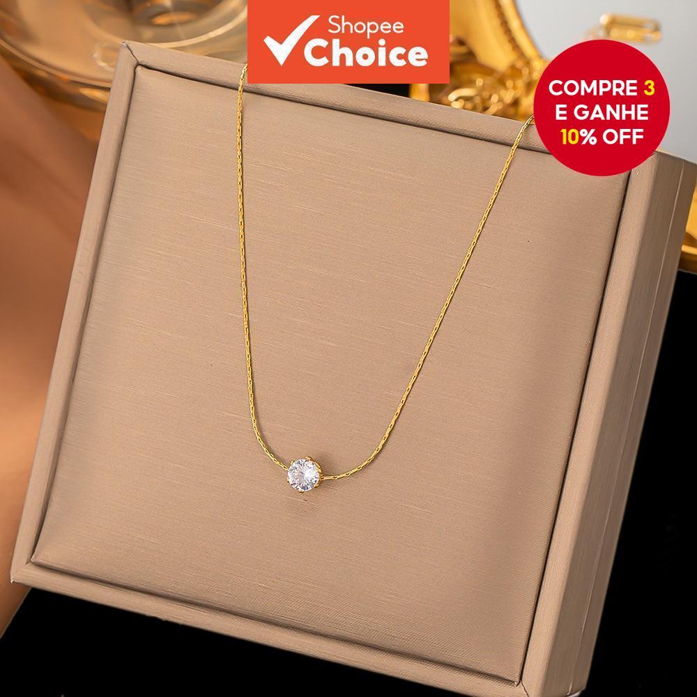 Colar de aço de titânio requintado que não desbota 18 colar curto de moda feminina banhado a ouro