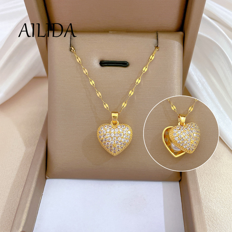 Colar De Aço Titânio Luxo Leve E Lindo Pérola De Coração De Pêssego Feminino Influenciador All-Match Clavic