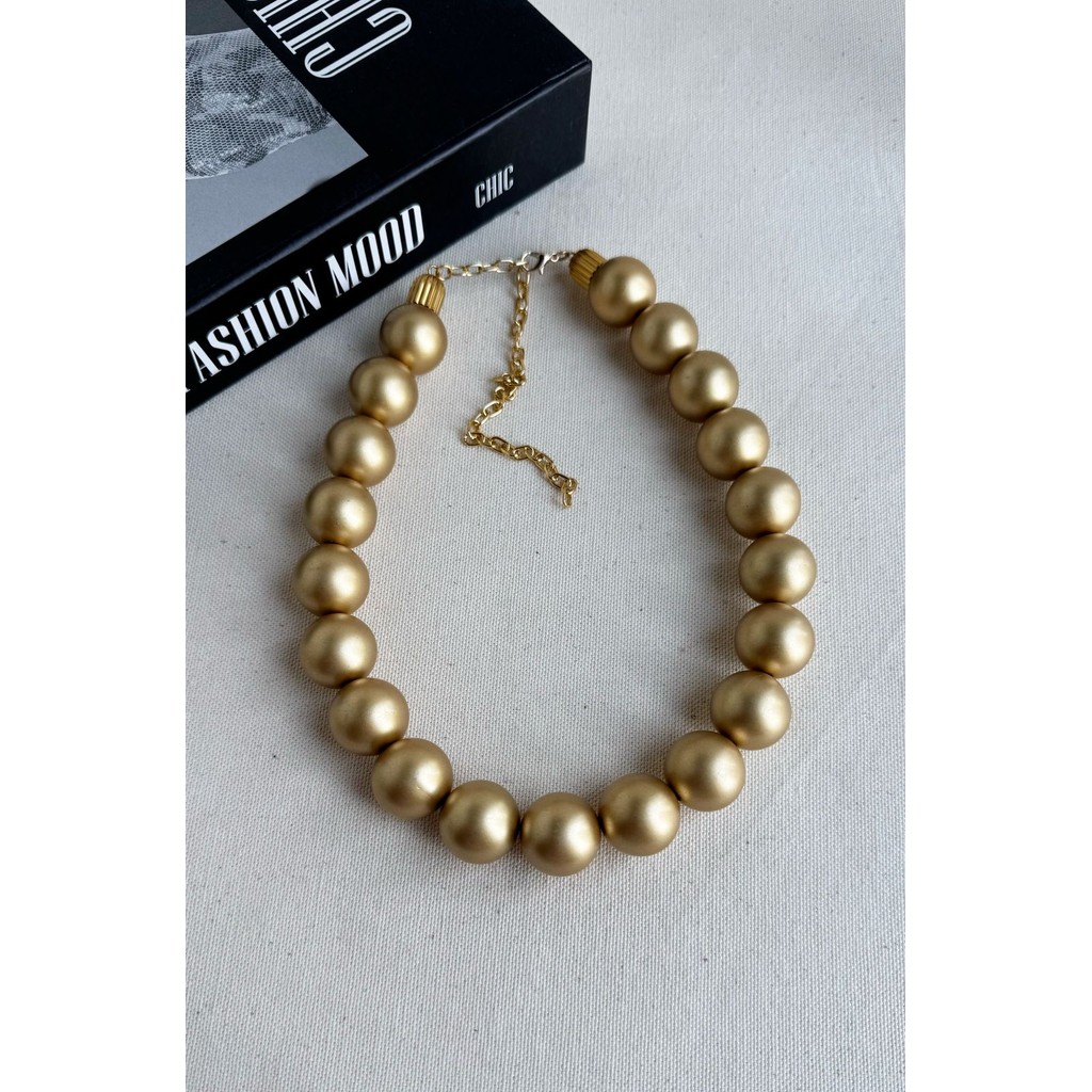 Colar de Bola Dourado Fosco Vintage Retrô