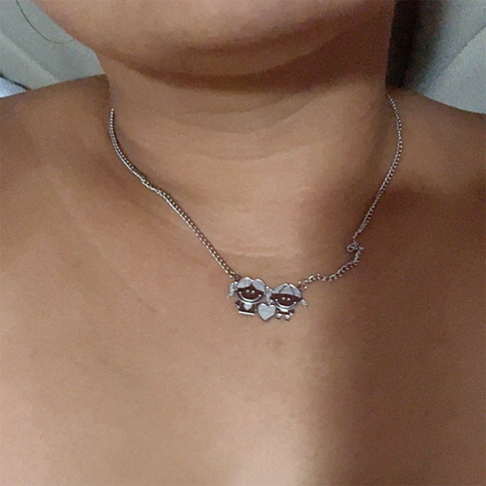 Colar de Casal Gargantilha feminino banhado aço Cirúrgico antialérgico prata coração menina menino