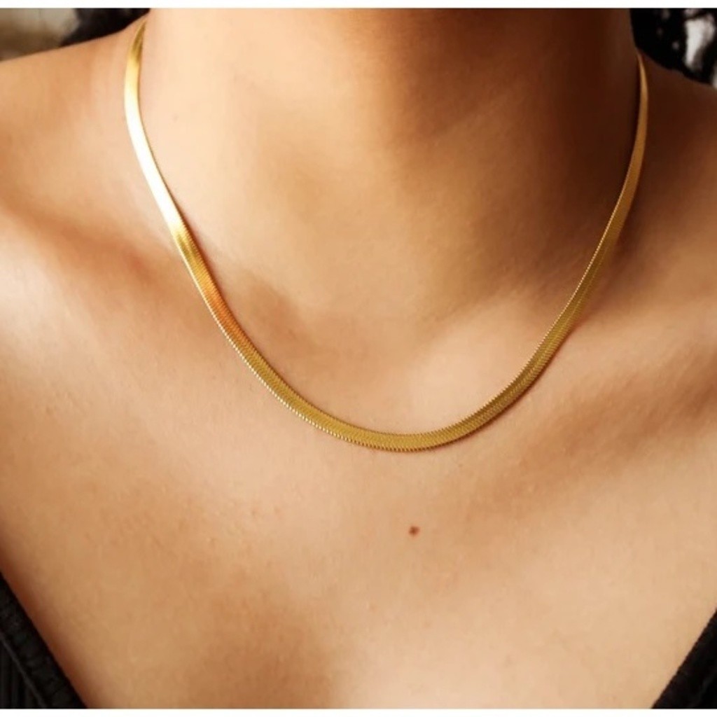 colar de cobra plana de 5 mm Corrente de ouro 18K a prata 925