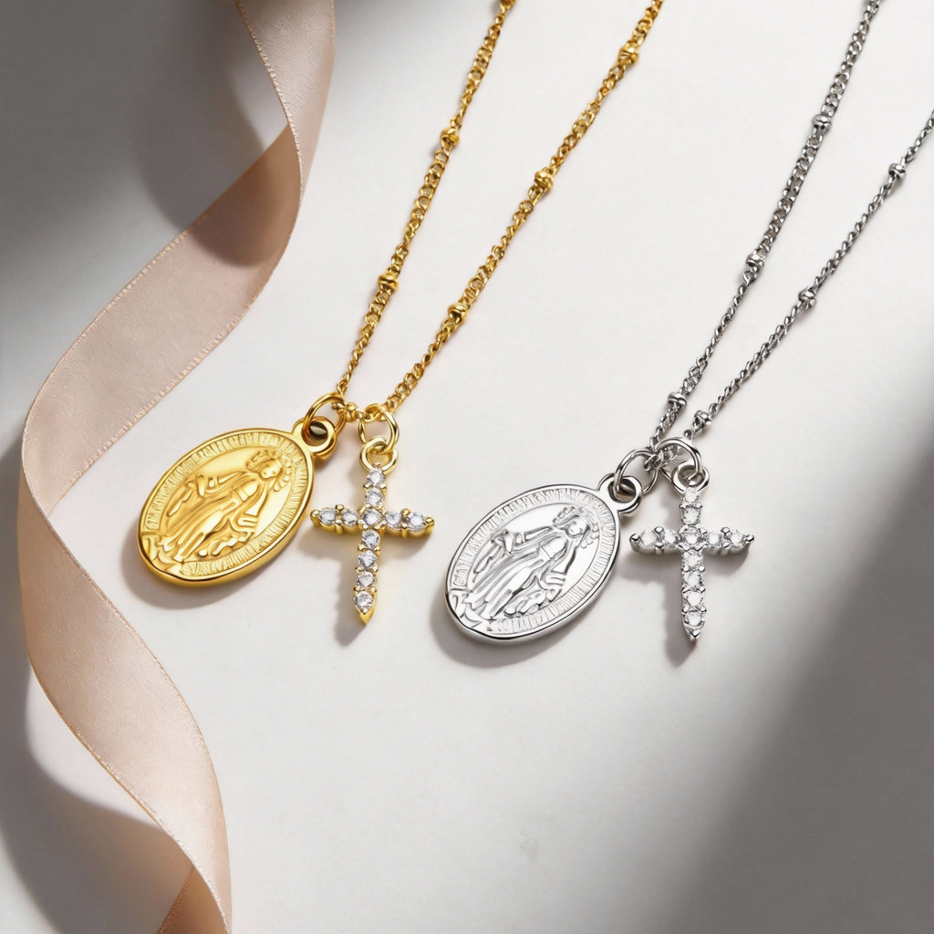 Colar De Cruz Vnox Para Mulheres , Corrente Religiosa Delicada Com Pingente De Fé 18K , Nossa Senhora/Saint Benedict , J