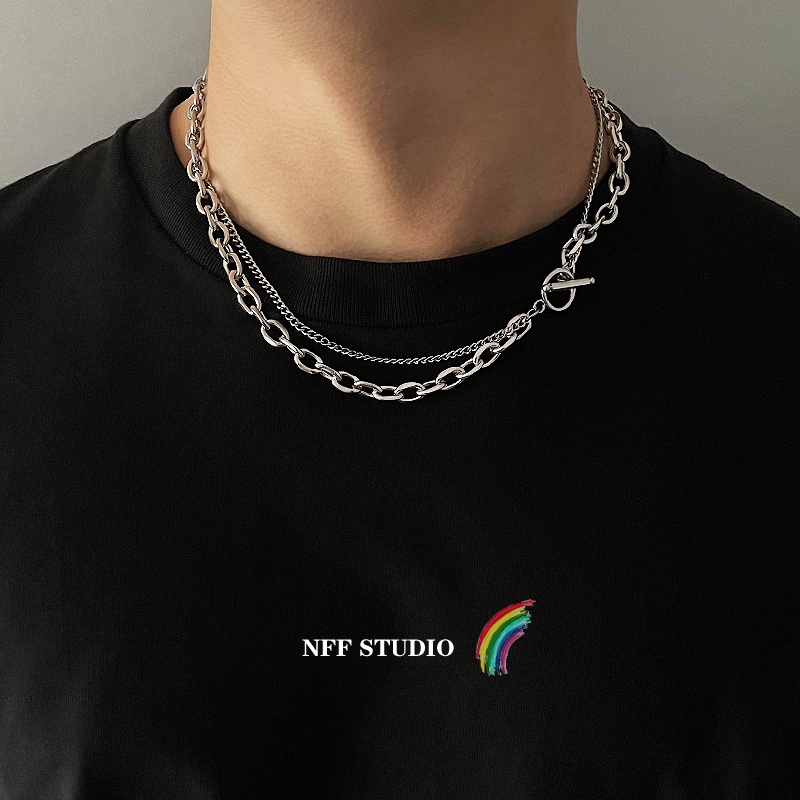 Colar De Dupla Camada Cuba Estilo Europeu E Americano hip-hop Corrente Grossa De Aço Titânio Ranhurado De Osso De Bloque