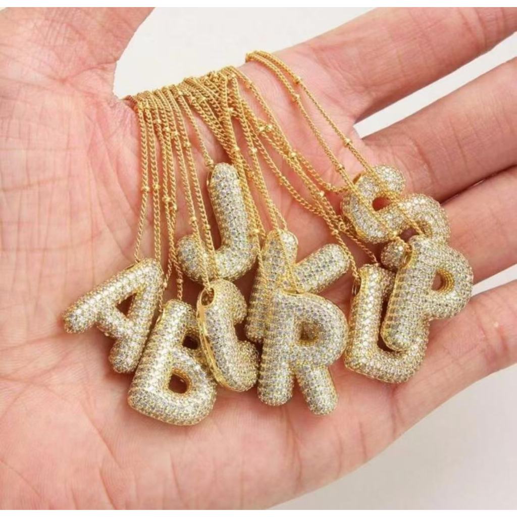 Colar de Letra Alta Qualidade A-Z Cartas Nome Pingente com zircônias cravejadas banhado a ouro 18k e prata 925