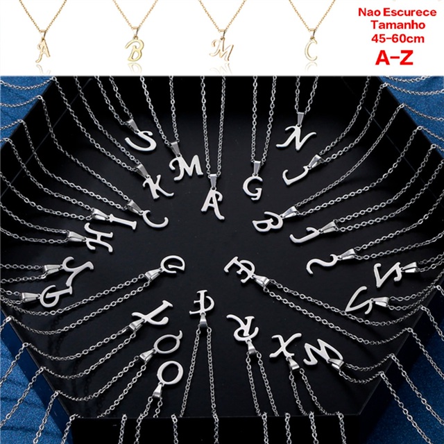 Colar de letra não escurece corrente feminino em Aço Inox Dourado prata Inicial Alfabeto A B C F M