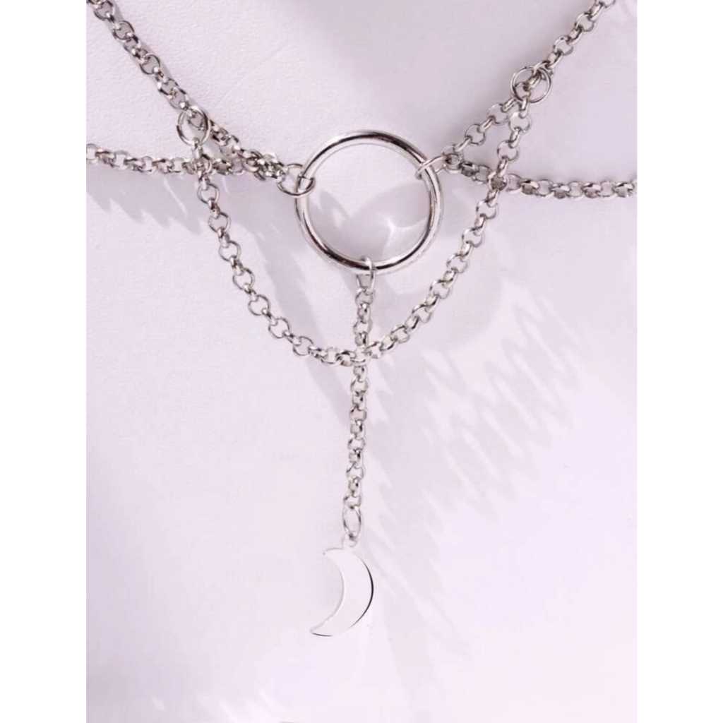 Colar de Lua - Colar Gargantilha Choker Gotica Feminina Punk Rock Prata Circulo Lua Estrela