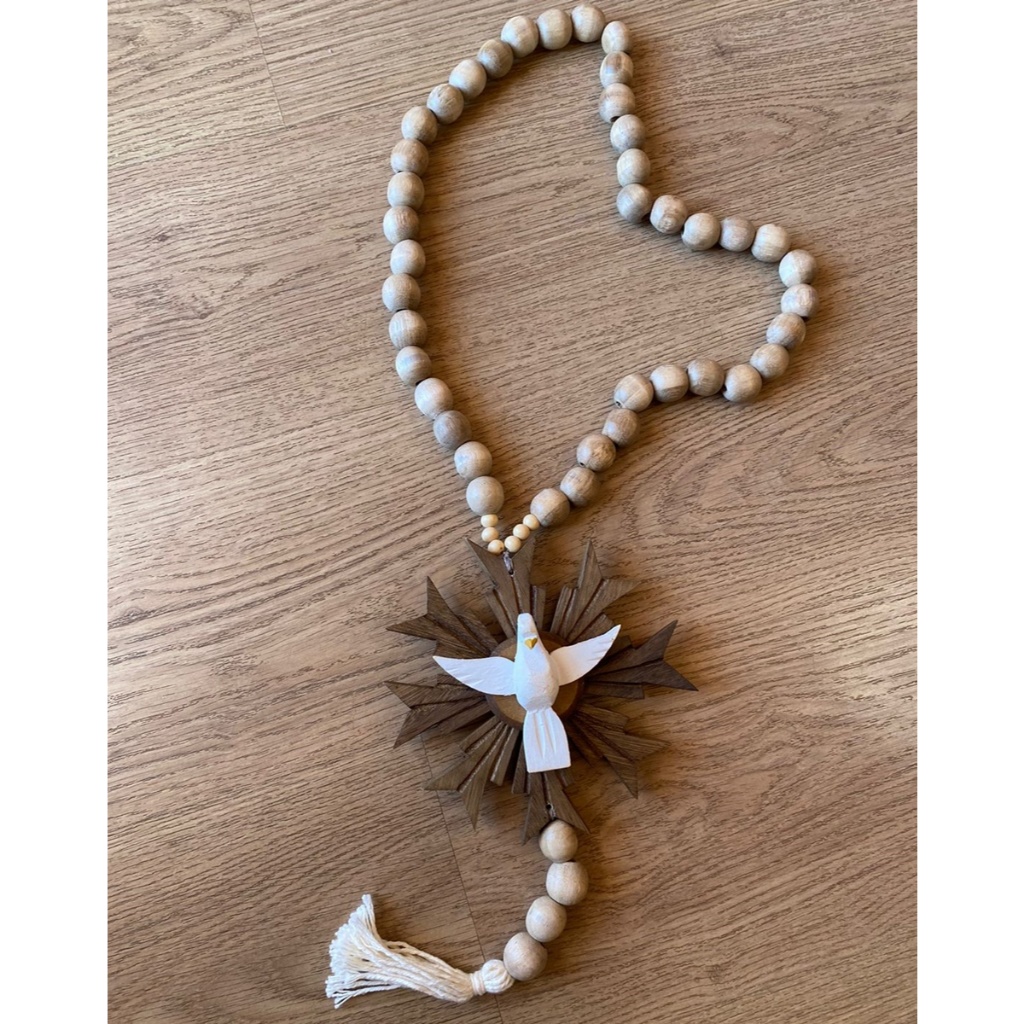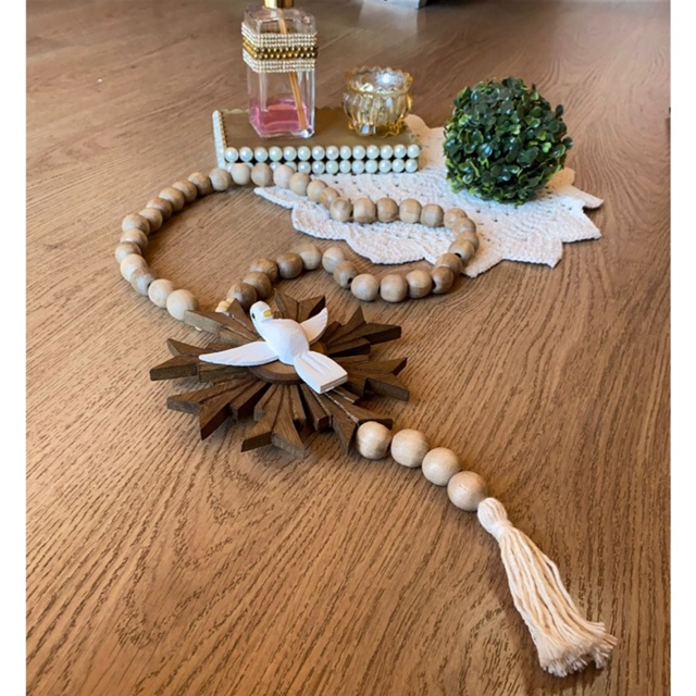 Colar de mesa decoração centro de mesa madeira super resistente grande terço com divino rústico