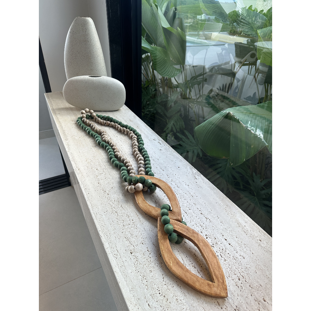 Colar De Mesa Decorativo Grande Em Madeira Modelo Pingente