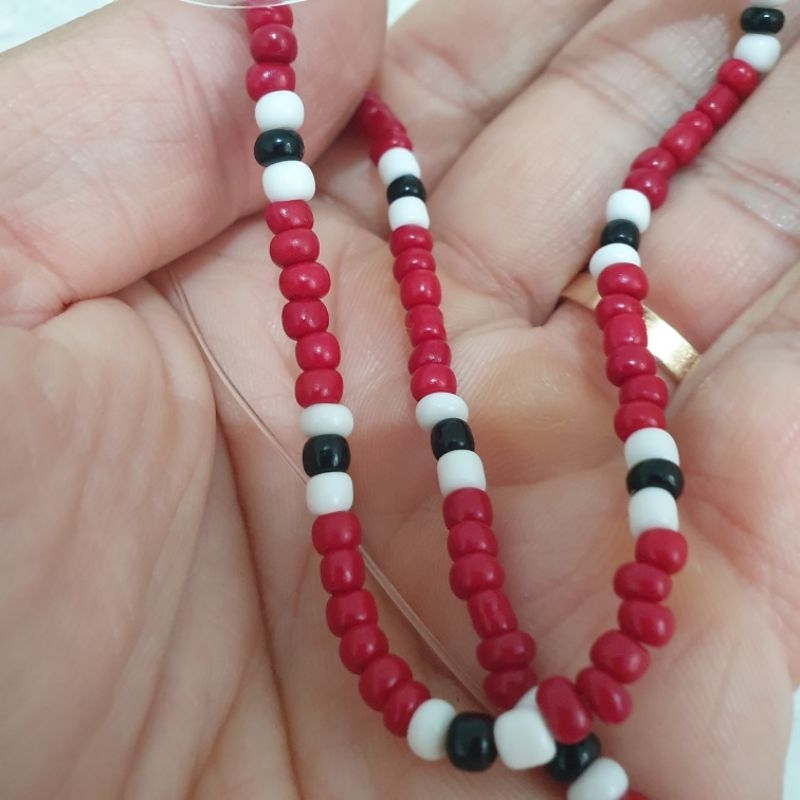Colar de Miçangas 4mm Vermelho Branco e Preto Estilo Coral Fecho Lagosta e Corrente Extensora no tamanho de 4cm