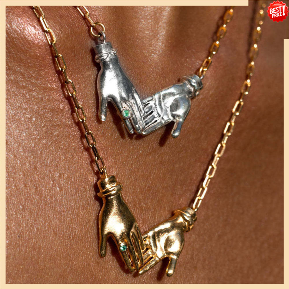 Colar De Palmas Criativas , Mãos Sobrepostas , Decoração De Zircônia , Corrente De Clavícula , Pingente Banhado A Ouro P