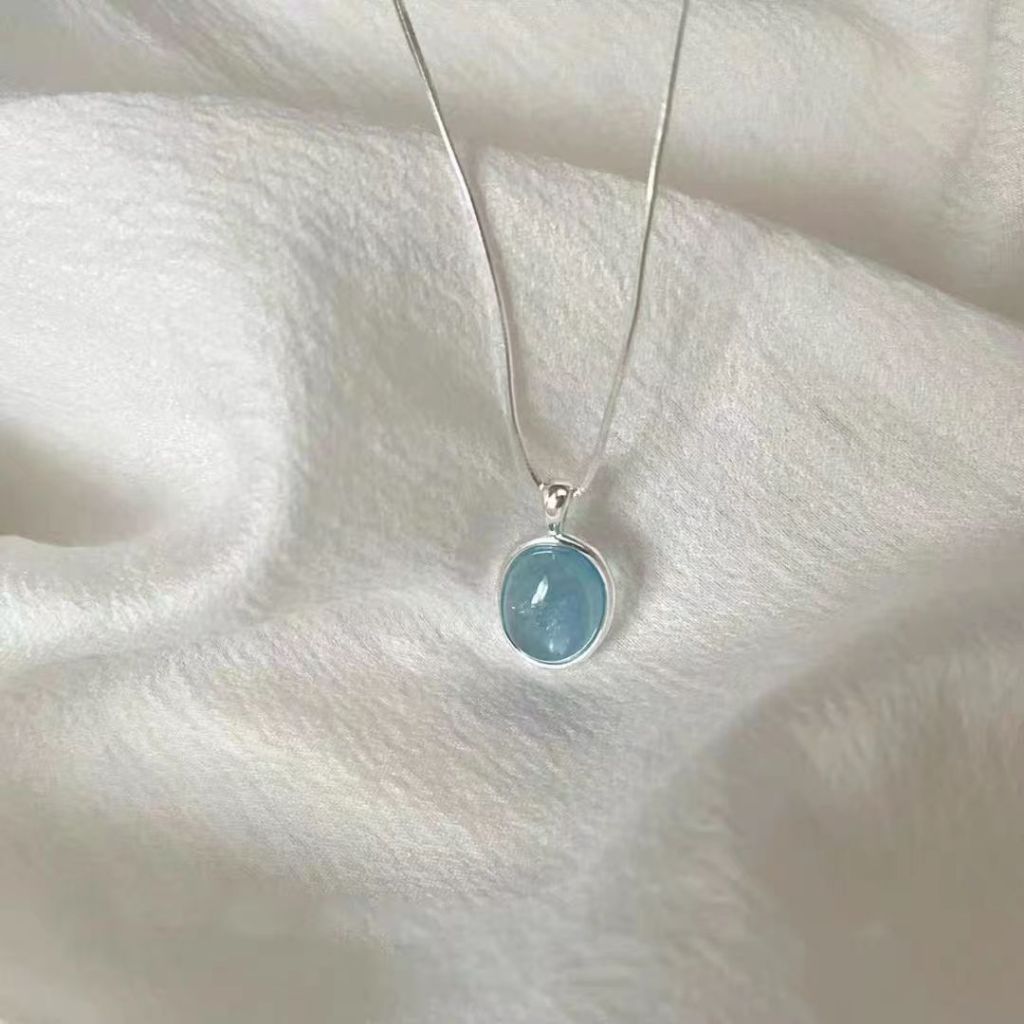 Colar de Pedra da Lua Aquamarine Colar de Pedra da Lua Fêmea Desenho de Nicho de Partida Sentir Luz Luxo Oval Pingente Cobra Corrente de Ossos Fema