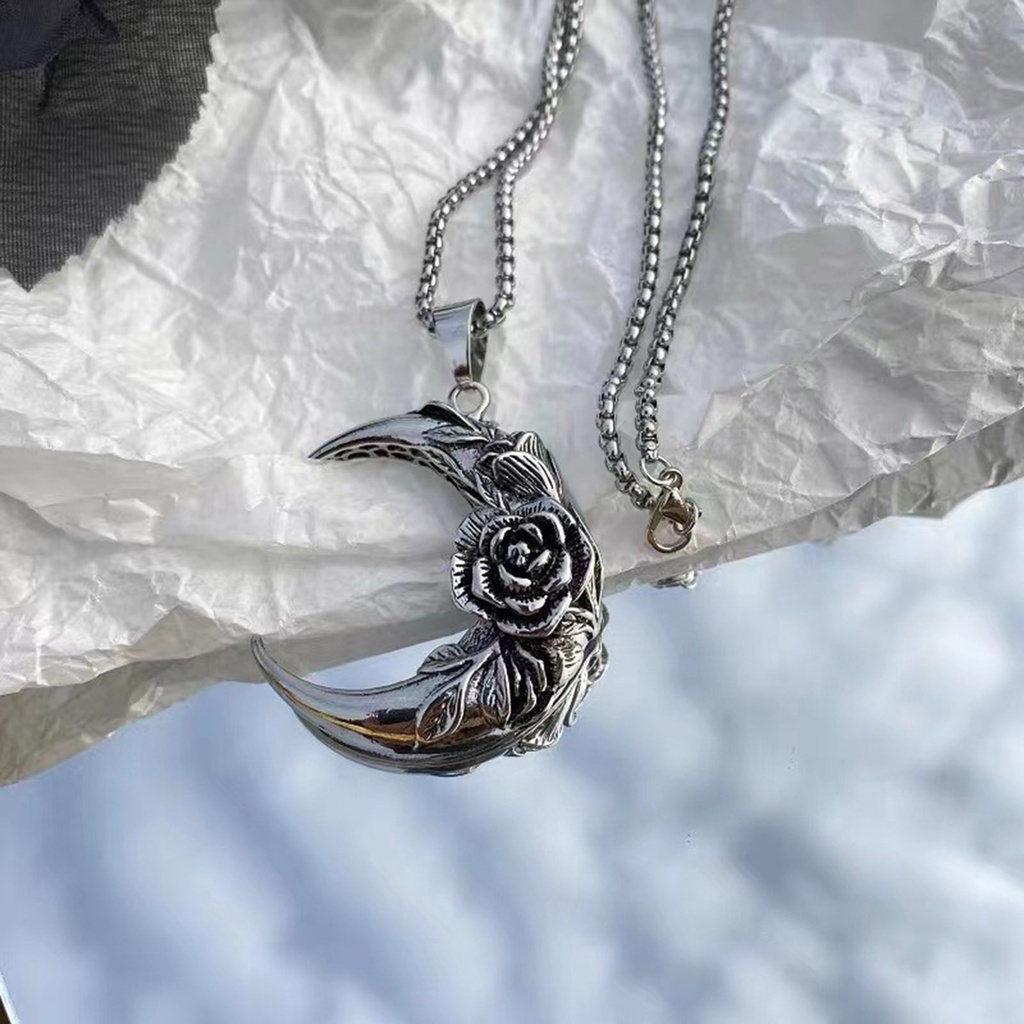 Colar De Pedra Punk Rock Gótico Masculino Vnox , Pingente De Prata Da Lua Rosa De Aço Inoxidável , Jóias Para Meninos