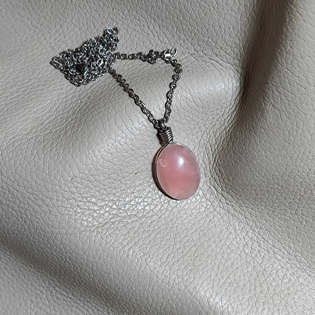 Colar de Pedra Quartzo rosa oval em Aço Inoxidável - Pedra natural brasileira