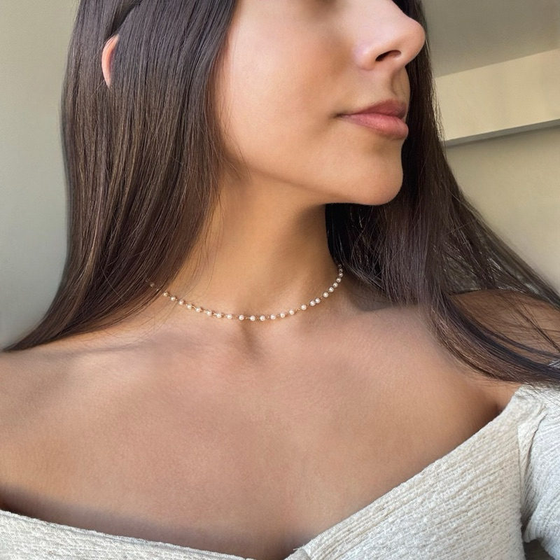 Colar de Pérolas Dourado Choker Feminino Elegante Aço Inoxidável Hipoalergênico Delicado Não Escurece Aço Inox