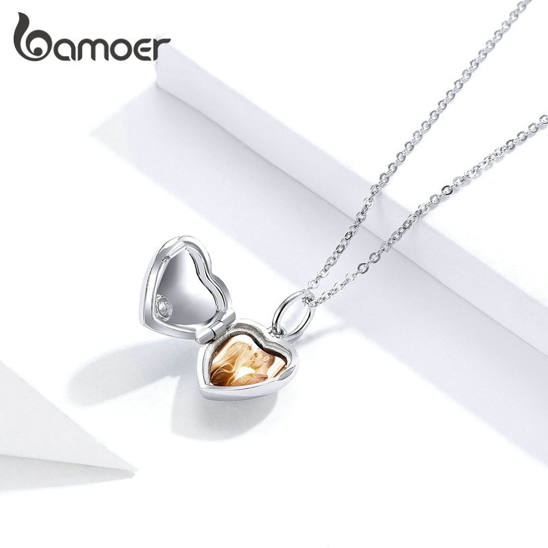 Colar De Prata Bamoer 925 Caixa De Coração Personalizada Única Pingente Presentes De Bricolage
