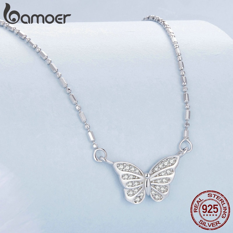 Colar De Prata Bamoer 925 Libras Esterlinas Jóias Em Forma De Borboleta Para Presentes Femininos