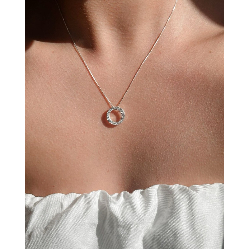 Colar de Prata Círculo Cravejado Prata 925 Envio Imediato