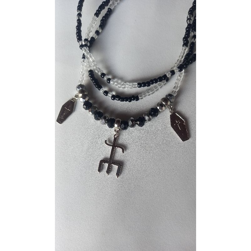 -miçanga Preta e transparente. -Detalhes em cristais 8mm. -1 pingente de tridente e 2 pingentes caixão Prazo de entregas de 1 a 4 dias.