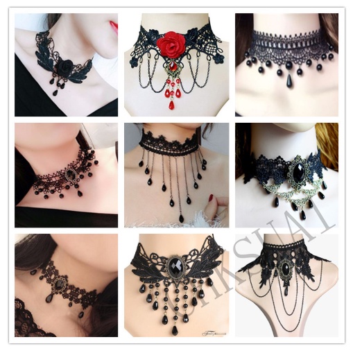 Colar De Renda Preta Gargantilha Estilo Vintage Feminino Gótico Casamento Rosa Vermelha Cristal Diamante Pingente