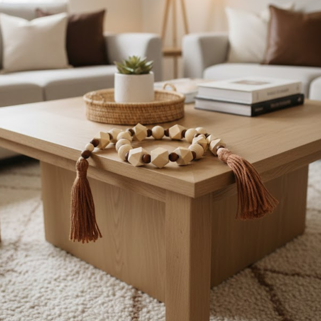 O Colar Decorativo para Mesa com Tassel MK Estrela é a escolha perfeita para quem busca um toque de aconchego, elegância natural e estilo artesanal na decoração. Produzido em madeira natural cuidadosamente trabalhada e interligada por fio de algodão resistente, este item decorativo valoriza mesas de jantar, aparadores, bandejas, racks e superfícies decorativas. Seu design com contas em formatos variados e acabamento em tassel traz um visual sofisticado e acolhedor, ideal para ambientes com decoração rústica, boho, escandinava ou contemporânea. Além de funcional como elemento decorativo, agrega textura, equilíbrio visual e personalidade ao espaço, sendo uma peça versátil que se adapta tanto a composições minimalistas quanto a decorações mais elaboradas. Destaques: Design Artesanal: Cada peça apresenta acabamento delicado que valoriza o trabalho manual e o visual natural. Estilo Versátil: Ideal para compor mesas de jantar, centros de mesa, aparadores e bandejas decorativas. Material Natural: Produzido em madeira natural com fio de algodão, trazendo charme e sustentabilidade. Tassel Decorativo: O acabamento em tassel adiciona movimento e sofisticação à composição. Elemento Aconchegante: As contas decorativas criam uma atmosfera acolhedora e elegante no ambiente. Especificações do Produto: Produto (contém): 1 Colar Decorativo para Mesa com Tassel Dimensões do produto: 75 cm (comprimento total) Material: Madeira natural e fio de algodão Modo de uso ou Instruções de cuidado: Utilizar apenas em ambientes internos. Limpar com pano seco ou levemente umedecido. Evitar contato com água em excesso e exposição direta ao sol. Colar Decorativo para Mesa com Tassel