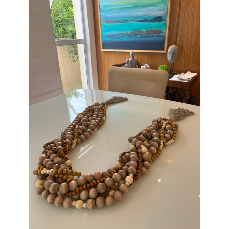 Colar decorativo de mesa Barroco 8 camadas grande grosso largo madeira Cris Albuque decoração sala