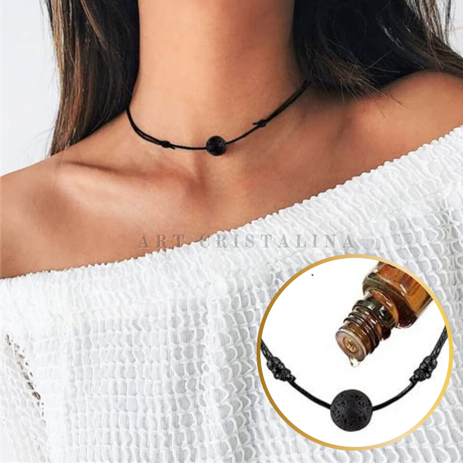 Colar difusor de Aromas para óleos essenciais com Pedra vulcanica Natural