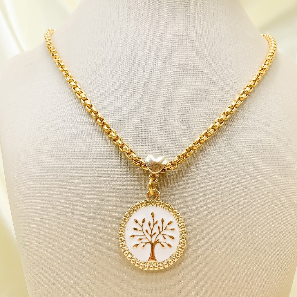 Colar dourado arvore da vida, semi joia a ouro