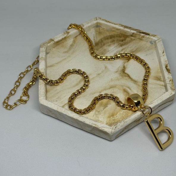 COLAR DOURADO Colar folheado a ouro 18 k com pingente de letra delicado -moda luxo B