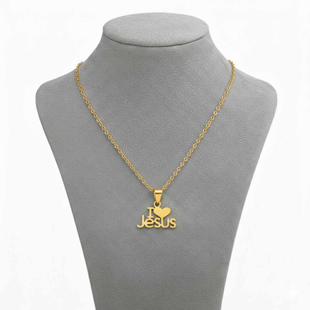 Colar Dourado Pingente I Love Jesus Proteção e Estilo 60cm em Aço inoxidável Unissex Com Extensor