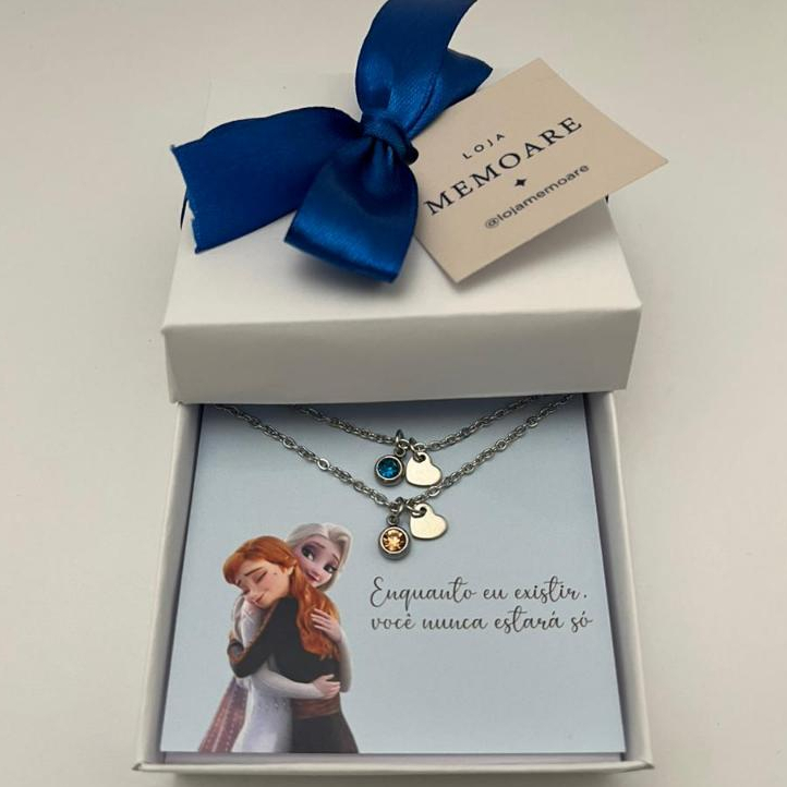 Colar Duplo Frozen Amizade ou Irmãs – Coração com Ponto de Luz + Caixa Presente