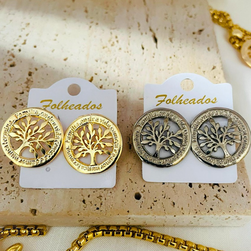 Colar e brinco árvore da vida folheado ouro ou prata veneziana grossa