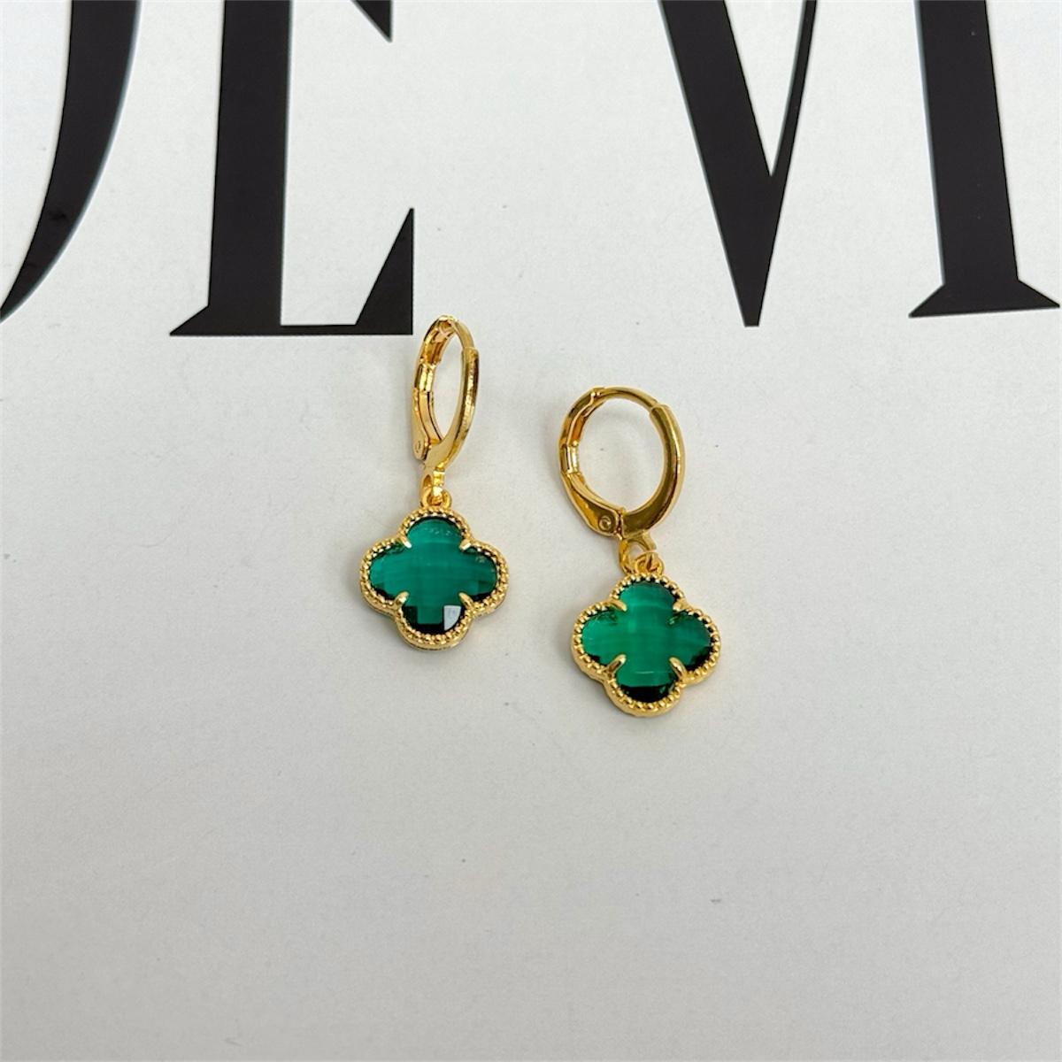 Colar e Brinco Trevo Zircônia Esmeralda Banhado a Ouro