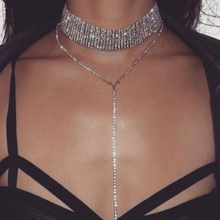 Colar Elegante Punk Metal diamante ,Longo,Pingente Presente Perfeito Para Festas E Noite,Colar de joias femininas