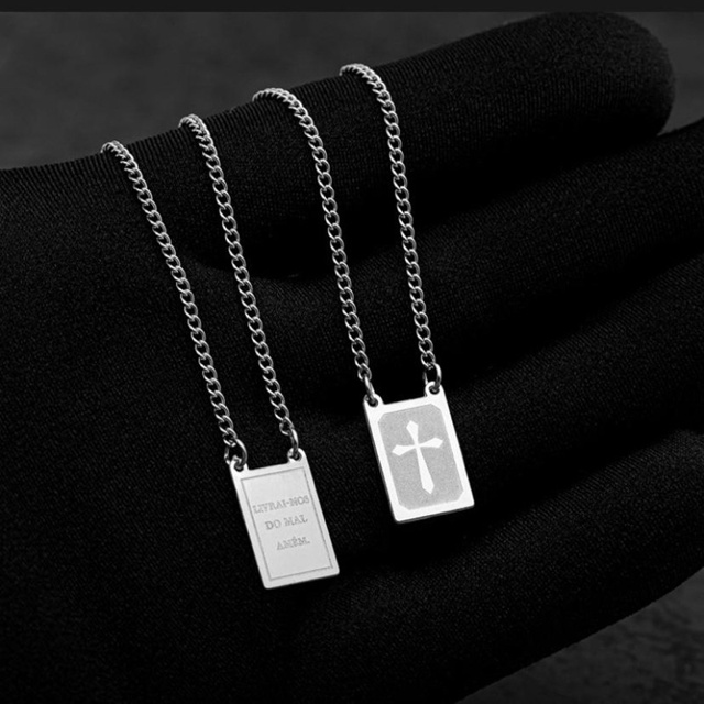 Colar Escapulário Prata Aço Inoxidável Proteção Cruz Livrai-me do Mal Amém Unisex