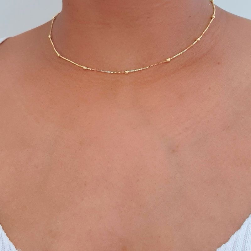 Colar Feminino Com Bolinhas Folheado A Ouro 18k Semijóia
