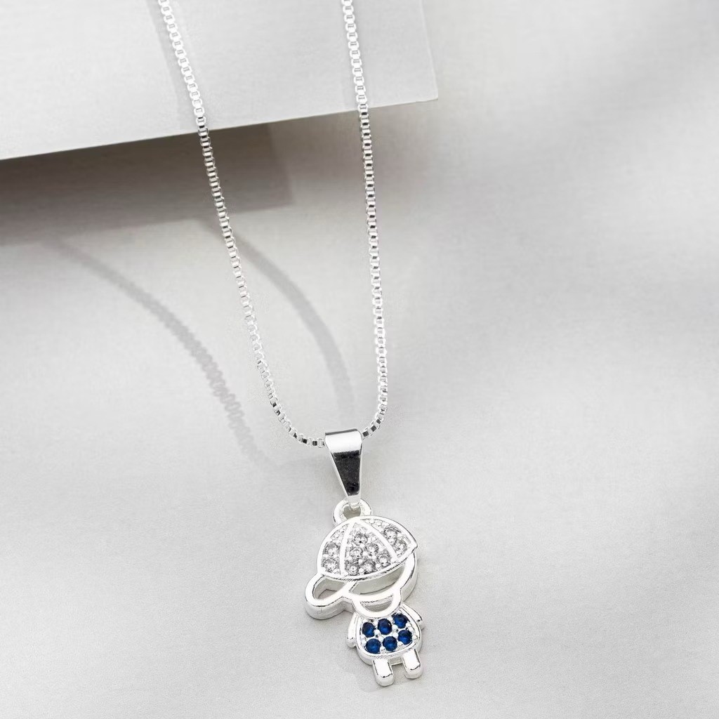 Colar Feminino com Pingentes de Crianças Menino e Menina, Cravejado em Zircônias, Banhado a Ouro 18K e Prata 925