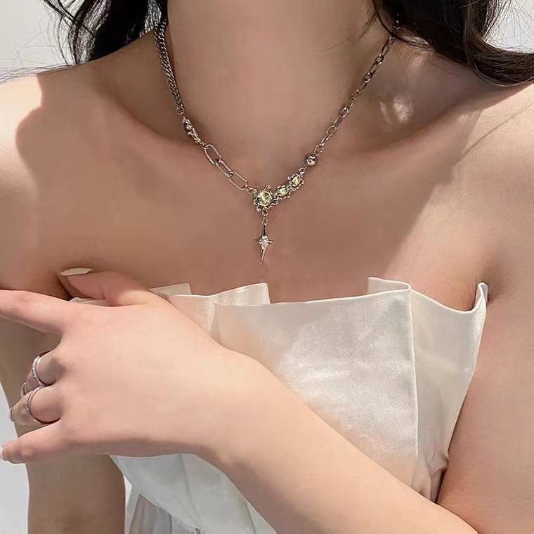 Colar Feminino Coreano Y2K Moonstone Pingente De Prata Joias Chiques