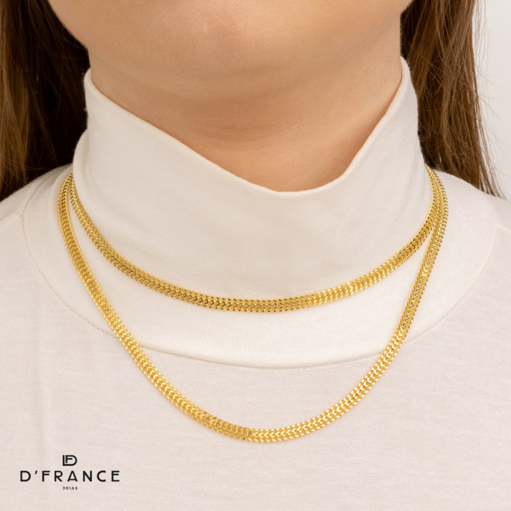 Colar Feminino Grumet Dupla Banhado a Ouro 18K - D France Semijóias